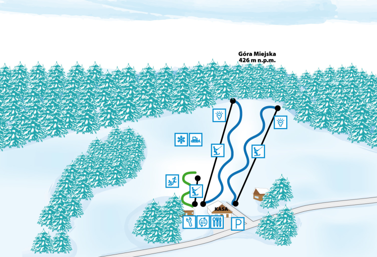 - „oślą łączkę” dla osób stawiających pierwsze kroki na nartach,